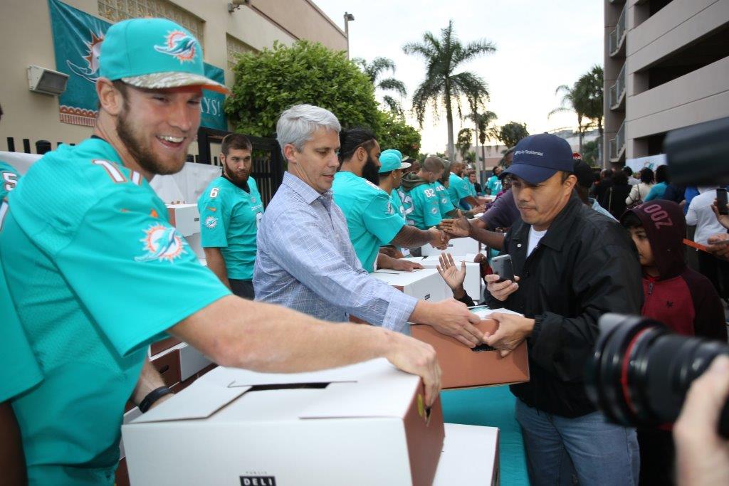 “Feeding South Florida is grateful for the ongoing support of the Miami Dolphins throughout the year, but especially during the holidays. Thanks to the players, coaches, wives and team for helping serve 500 families struggling to put food on the table,” said Feeding South Florida Vice President of Community Relations Sari Vatske.